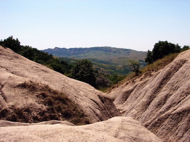 Totuşi, există şi măreţie, dar nu privind în înaltul cerului ci în largul orizontului. Pe o suprafaţă de vre-o 20 de hectare totul e pustiu. Nu creşte nicio plantă. Parcă este un peisaj de pe altă planetă. Noroiul proaspăt venit din adâncuri desenează limbi uriaşe cenuşii peste nămolul alb deja uscat. Departe, în zare, totul este normal – copaci şi verdeaţă din belşug.